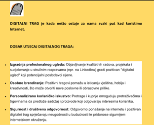Učenici 6. –ih razreda obradili su temu važnosti dobrih digitalnih tragova i na kraju izradili dokumente u Wordu.
