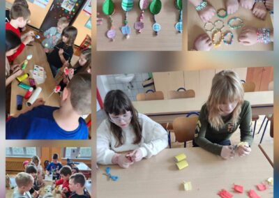 Tako su se članovi sekcije Kreativni prirodnjaci zajedno sa svojom učiteljicom poigrali modelarskim gipsom i od njega napravili prekrasne ukrase koje nakon sušenja ukrašavali temperama. Osim ukrasa od gipsa izrađivali su i zečeve od drva i plišane žice.